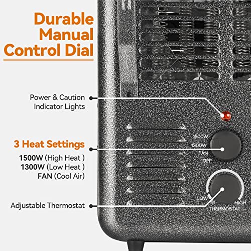 ?Fast Heating?The greenhouse heater with thermostat, 2 heat settings and a natural wind mode. 1500W high-heat mode and 1300W low-heat mode, more efficient than the other space heaters, and the heat coverage up to 200 sq.ft. With heating element and powerful fan that blows out the heated air, to quickly warm your small greenhouse and garage
