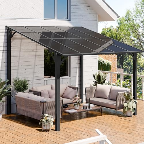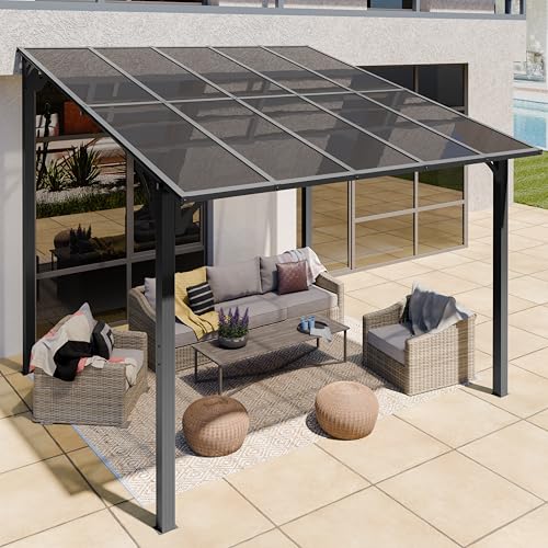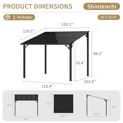 Shintenchi 10’x 10’ Gazebo for Porch,Hard Top Lean to Gazebo Pergola with UV Protection Roof,Large Wall-Mounted Heavy Duty Awnings for Patio, Decks, Backyard and More