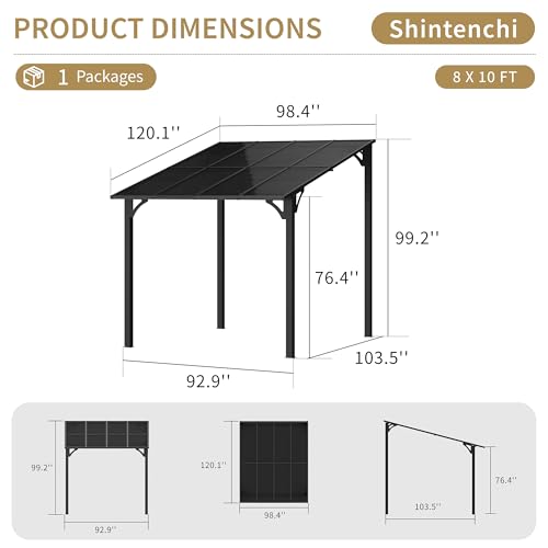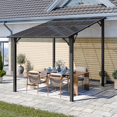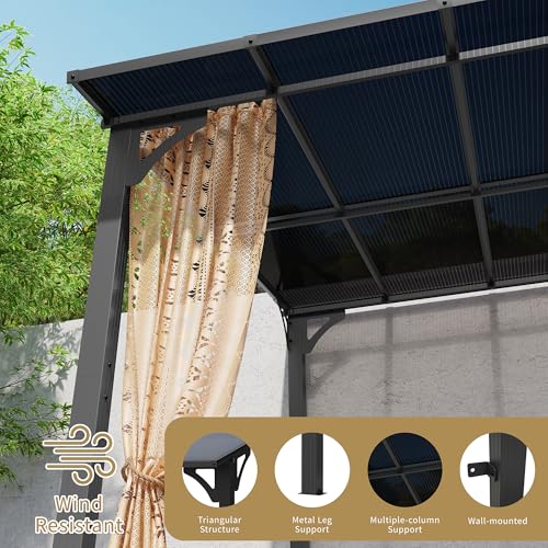 ?Sloping Roof, Splicable Design?This lean to gazebo ensures rainwater drains quickly, while the integrated gutter gap prevents water accumulation, extending the life of the gazebo even in adverse weather conditions. Furthermore, this wall-mounted gazebo features a joinable design, allowing you to purchase multiple units and connect them together.Meet your different size needs.