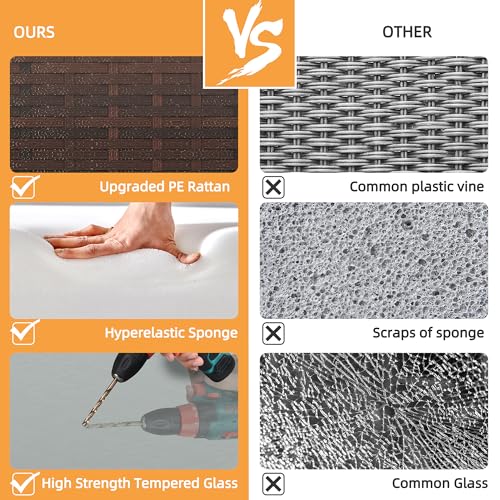Sturdy&Long-lasting Patio Furniture: Solid metal structure make it super safe to sit in the sofa set. Added strong steel for the frame enhance the sturdiness and allow the sofa to support heavy people about 400lbs. PE Wicker rattan is strong enough to survive inclement weather and guarantee the Patio Furniture Sets has a long service life.