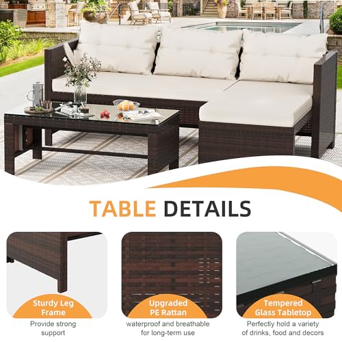 Great for Outdoor Spaces: This 3-piece outdoor sectional sofa sectional set fits up to 3 adults comfortably and suitable for all outdoor space, patio, garden, lawn, poolside, etc. There are three color choices of cushions for you.