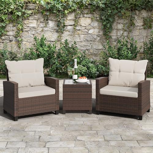 Premium Materials: This outdoor three-piece set is meticulously handcrafted using high-quality natural rattan, showcasing exquisite craftsmanship and enduring quality. Each strand of rattan is carefully selected to ensure a smooth and comfortable surface.