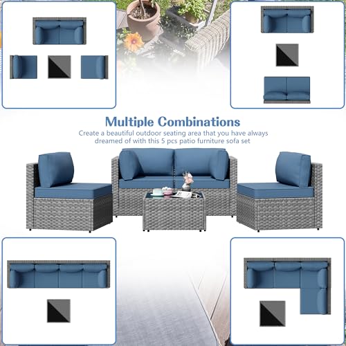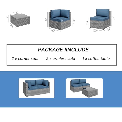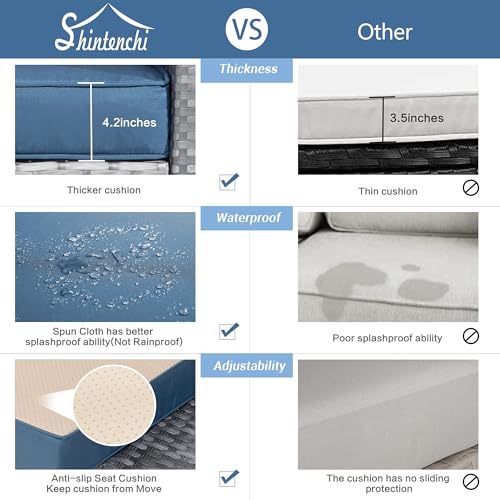 Sturdy&Durable: Solid metal structure make it super safe to sit in the sofa set. Added bars for the frame enhance the sturdiness and allow the sofa to support heavy people about 400lbs. Adjustable feet make it steady on uneven surfaces. PE Wicker is strong enough to survive inclement weather and guarantee the set has a long service life.Note: cushions are not water-proof, When you don' t use it, advise you to take cushions inside or buy a cover for longer service time.