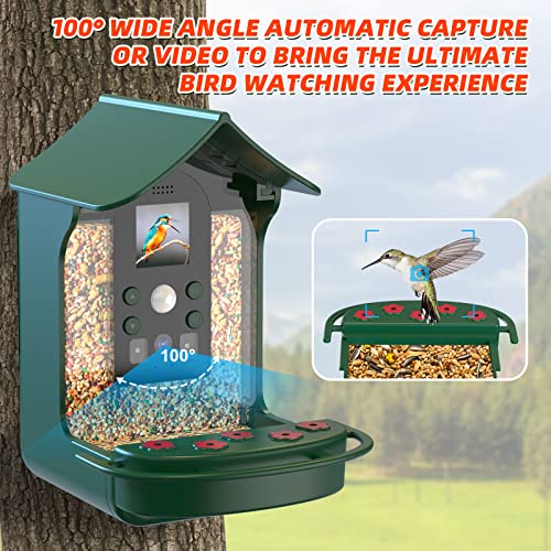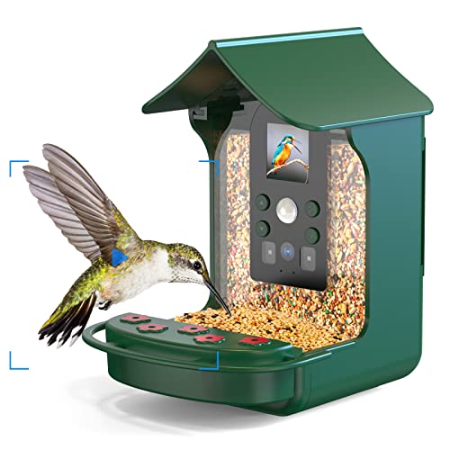 Bird and Hummingbird Feeder - The Smart Bird Feeder comes with two different feeding troughs for a variety of choices. The transparent acrylic inner wall can hold 700ml of bird food, and the roof keeps the rain away from the birds, making it a great outdoor bird feeder (Size: 17.8 x 10.1 x 13.5 cm).