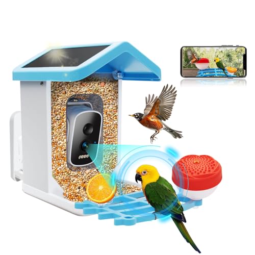 ????Bird-Friendly Design: Bird feeders for outdoors comes with 1.5L large capacity container and comes with extra fruit fork and hummingbird feeder, you can place different bird food to attract different kinds of birds. The built-in two-way microphone lets you listen to birdsong while repelling unwanted visitors.