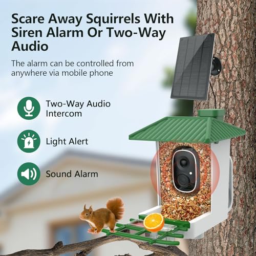 Solar Powered & Eco-Friendly Smart Bird Feeder Camera: This solar powered bird feeder with 2.4GHz WiFi ensures continuous energy and connectivity for year-round birdwatching. The built-in solar panel keeps your feeder running without frequent charging, ideal for wild bird feeders, outdoor birdhouses, or eco-friendly bird lovers. Stay connected through the app anytime, anywhere, and enjoy nature the smart way.