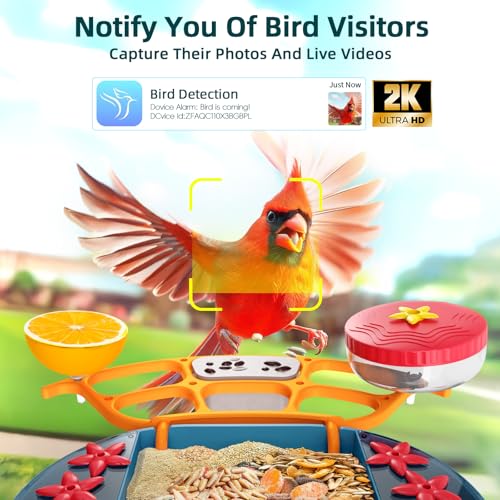 Advanced AI Identify & Clear 2K Video:Smart bird feeder with camera can identify 10000+ bird species using the world's most advanced AI algorithms. The 2K resolution allows you to get high-definition pictures and videos both day and night. The bird feeder camera only supports stable 2.4ghz Wi-Fi, so you'll never have to worry about losing signal and missing out on great moments