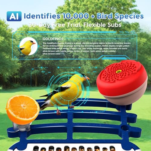 Recognition Smart Bird Feeder with Camera - This bird feeder camera automatically captures and recognizes more than 16,000 species of birds and notifies you of their arrival in second. It takes you to explore the wonders of the bird world. With the bird camera, you can know more about recognized birds while enriching your spare time. (Free 30-day trial of AI identification for new users)