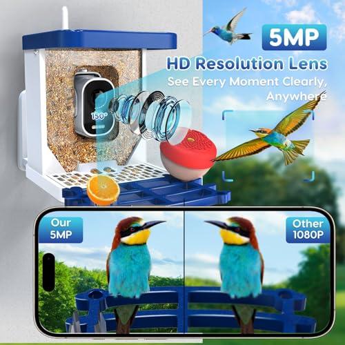 Full 2.5K HD Resolution with 150° Wide Angle - Enjoy the beauty of the bird world with a 150° wide-angle camera bird feeder and its stunning 2560×1440 Full HD resolution. Built-in night vision and magnification allow you to capture the behavior and details of your avian visitors with crystal-clear vision, day or night