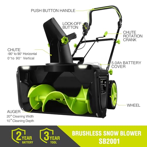 ?Long Battery Life? Includes 2 x 20V 5.0Ah batteries, providing up to 25 minutes of continuous runtime for longer, enough to clear up to 8 driveways on a single charge.