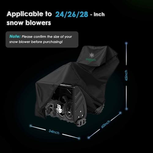 ?Universal Fit Snow Blower Cover - Secure & Windproof Seal? This Snow Blower Cover is engineered to fit most Snow Blower Cover universally covers major brands like Honda, Ego, Ryobi, Snow Joe, PowerSmart, Ariens, Cub Cadet, Troy Bilt, Craftsman, Greenworks, Husqvarna, Toro and More. The upgraded design features an elastic hem with quick-release buckles and an adjustable drawstring to create a secure, windproof seal that stays firmly in place, even during storms.