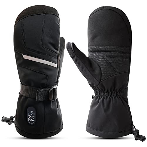 Unisex heated Mittens for All Winter Activities: The black, stylish heated mittens are designed for both men and women. The full mitten design helps retain heat efficiently, making them ideal for any winter sport or activity.