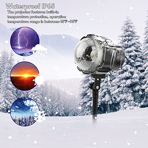 ??Waterproof Projector Lights?? ?High grade waterproof effect IP65. Sealed design, weatherproof cap, can withstand snow, heavy rain and strong sunlight. Note: please don’t soak projector light in water directly.