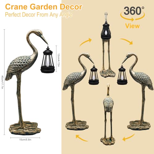 Ideal Gift & Various Usage -- Present the solar garden decor as a thoughtful gift for mom, dad, grandma, grandfather and friends for birthdays, housewarmings, Mother's Day, Father's Day or Christmas. Whether placed among flowers, by a pond, or on patio, front porch or lawn, this crane statue adds character and charm to any outdoor setting, making it perfect for gardens, yards, or balconies