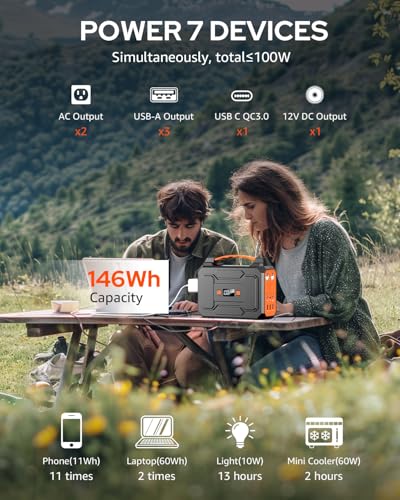 PORTABLE POWER STATION WITH LARGE CAPACITY: This portable power station with solar panel 146Wh/39600mAh is powerful enough to charge your devices like laptops, phones, tablets, cameras, drones, fans, in-car appliances. Portable Power Station weights only 3.3lb, fits perfectly in backpack or suitcase, making it a great portable power station for camping, hurricanes, emergency, home and outdoor activities.