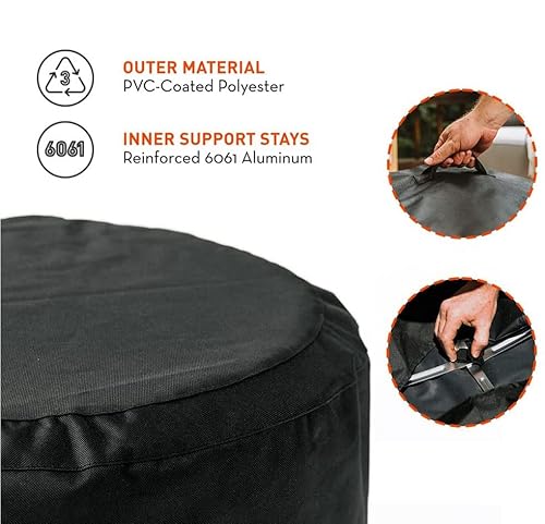 WATERPROOF COVER: This protective fire pit cover features a weather-resistant design with PVC-polyester and reinforced aluminum stays. Stay warm every season with the protection your fire pit needs from water, dust, and snow.