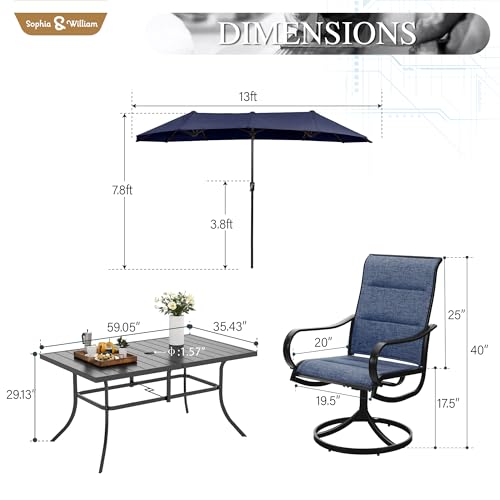 Umbrella FabricUsing durable 100% polyester fabric, waterproof and breathable. This umbrella canopy is fade resistant. Provides up to 99% UV protection. Easy to clean if needed. 13ft doublesided patio umbrella provide wide coverage from the sun which is ideal for your family and friends at the courtyard, beach or swimming pool