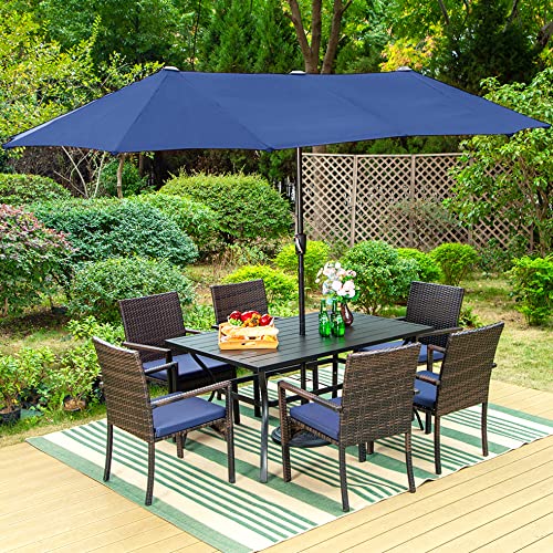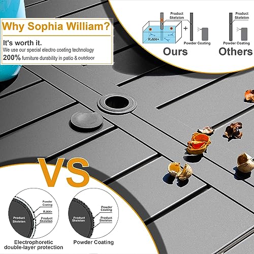 6-Person Outdoor Dining Table: Black iron table, designed to comfortably seat up to 6 guests. Table Size: 60.2"L x 37.8"W x 28H". Rust-resistant, ensuring lasting durability. With a 1.57" - 1.9" adjustable umbrella hole, you can easily add shade for sunny days, making every meal feel special