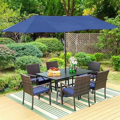 Durable Rattan Material: Our outdoor dining chair features exquisite handwoven PE wicker, providing a sophisticated and elegant look that enhances any outdoor setting while offering superior durability. Load capacity: 330 lbs. Dimension: 25" D x 22.8" W x 34.5" H, seat: 19.5" W x 19.5" D