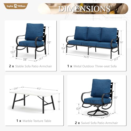 Cushion-Pro Technology: Experience effortless maintenance with the Sophia & William conversation set. Crafted with premium olefin, our Patent Cushion Pro outdoor fabric boasts exceptional water-repellent, soil-release, and stain-resistant properties. Simply use a cleaning spray and watch the stains vanish, leaving your furniture looking as good as new