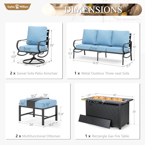 Cushion-Pro Technology: Experience effortless maintenance with the Sophia & William conversation set. Crafted with premium olefin, our Patent Cushion Pro outdoor fabric boasts exceptional water-repellent, soil-release, and stain-resistant properties. Simply use a cleaning spray and watch the stains vanish, leaving your furniture looking as good as new