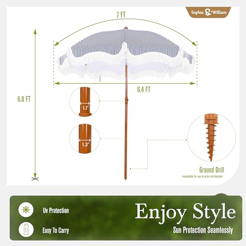 Cool and Beautiful: Enjoy the beach with this beautiful umbrella keep away from sun exposure. Made of durable 160G polyester fabric. Breathable which can keep you cool and beautiful in the hot summer