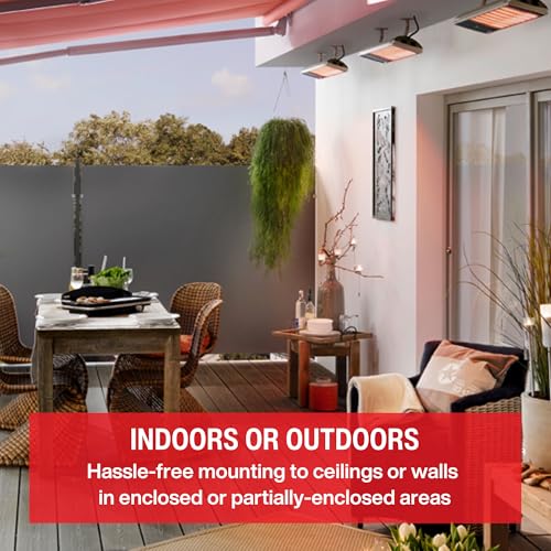 [ Indoor or Outdoor ] IP24 designed for dust and splash protection, our durable, radiant patio heater is perfect for enclosed, semi-enclosed, or fully open spaces with a weather shield (sold separately).