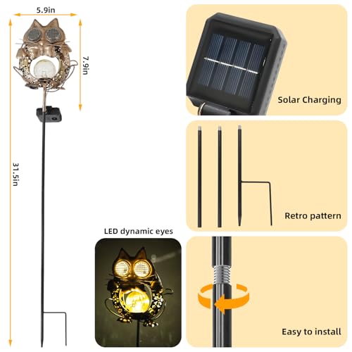 Solar Powered & Energy Efficient: This cat garden decor light has a built-in solar panel that automatically charges during the day and lights up at night without the need for wiring or external power. Note: Please turn on the power switch before first use and allow the solar panel to fully charge in direct sunlight.