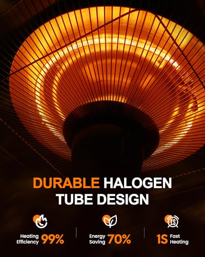 SAFE AND ENVIRONMENTALLY FRIENDLY: This electric patio heater produces no odors, chemicals, or fumes. The high quality, infrared heating is hardly affected by wind. Industry leading halogen tube technology heats efficiently with a lifespan of up to 5000 hours.