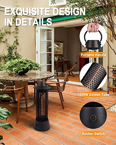UNDER THE HIGH COST OF FUEL, STAR PATIO OUTDOOR ELECTRIC PATIO HEATER WILL BE THE PERFECT SOLUTION FOR HEATING AT A LOW COST. Provides instant, steady, silent heating with one simple power setting of 1200W(up to 4100 BTUs). Efficient heat outputs within seconds. Heats up to 65 sq,ft, suitable for 2-4 people sitting around. Leading carbon tube technology heats efficiently with a lifespan of 5000 hours.