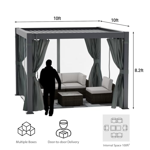 ALL-ALUMINUM: Our outdoor pergola is made from premium coated aluminum, lightweight yet durable. Resistant to rust, UV rays, and suitable for rainy, windy, snowy days.
