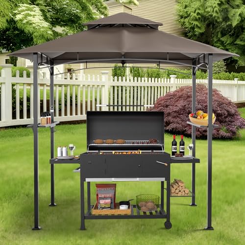 ?Additional storage and accessories?This outdoor grill gazebo comes with two shelves and 8 hooks for handy placement of barbecue tools and cleaning supplies. The top hook can even hold lights or fans.