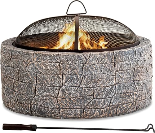 ?Sturdy Construction? - This wood-burning fire pit is made of powder-coated steel and manufactured stone which enables you to build a large warm fire. The stylish and high-class aesthetic make this an attractive addition to the outdoor, patio, or backyard.