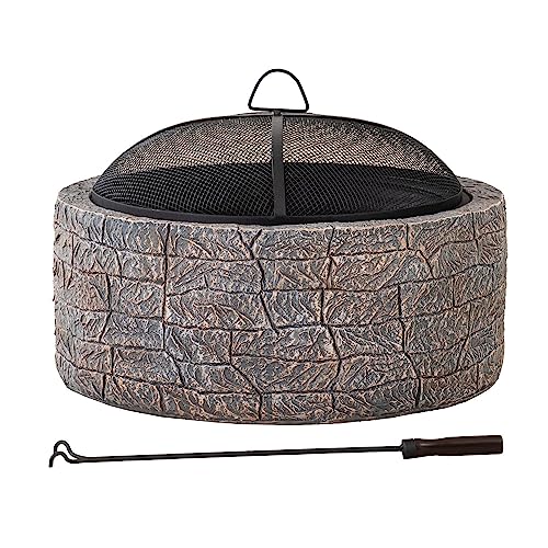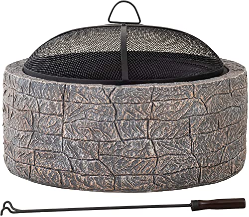 ?Lightweight & Portable? - 26.18" Dia. x 18.11" H, weight 28.66 lbs. Featuring a unique manufactured stone design, this fire pit looks like a custom built-in piece, which adds visual interest. In addition, it’s lightweight enough to easily move around.