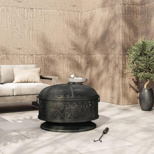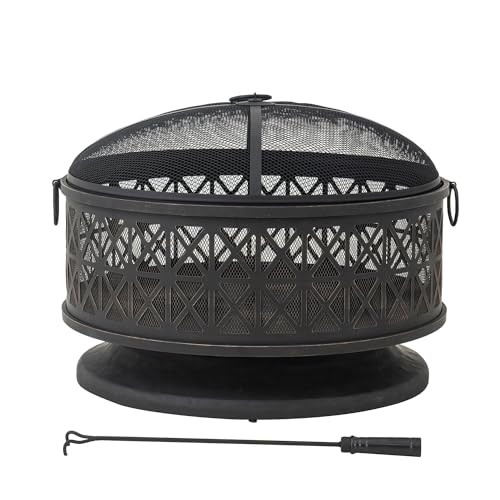 ?Full Set Included?- This outdoor fire pit comes with a fire poker and a steel mesh spark screen to safely catch embers and sparks while providing more air for larger flames and more heat output.