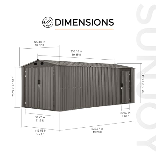 ?Extra Spacious Design?- With a generous 10’ x 20’ interior, this outdoor shed provides ample storage space for organizing all your tools, equipment, and belongings.