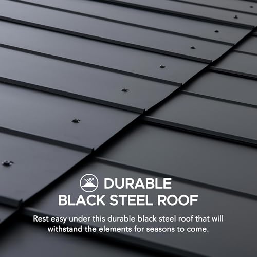 ?Durable and Sturdy?- Durable black powder-coated steel hardtop roof keeps the water out and provides protection from the various weather elements. Premium solid cedar wood frame construction with a natural-looking finish, makes the gazebo stronger and sturdier.