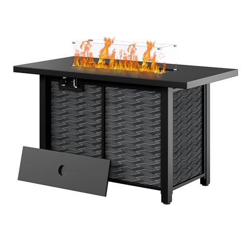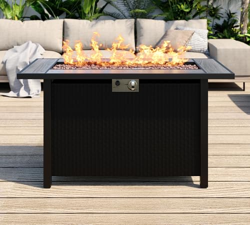 ?SAFETY DEVICE? The ignition device can stably output high heat up to 50,000 BTU and our gas fire pit is equipped with an ignition device for easy adjustment of flame and simple switch control use with 20LBS propane tank(not included)