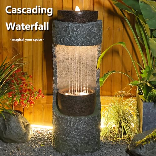 GARDEN WATERFALL FOUNTAIN: This flowing water fountain comes with built-in golden lighting, creating a warm ambiance. At night, the waterfall fountain transforms into a magnificent indoor decoration, adding endless charm to your space.