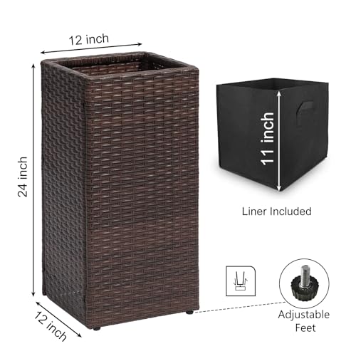 Durable Planter: The tall square planter is constructed of high-quality metal with all the handwoven charm of PE rattan, making it light-weight yet sturdy and durable. It is rust- and weather-resistant, so you can keep it out in your yard.