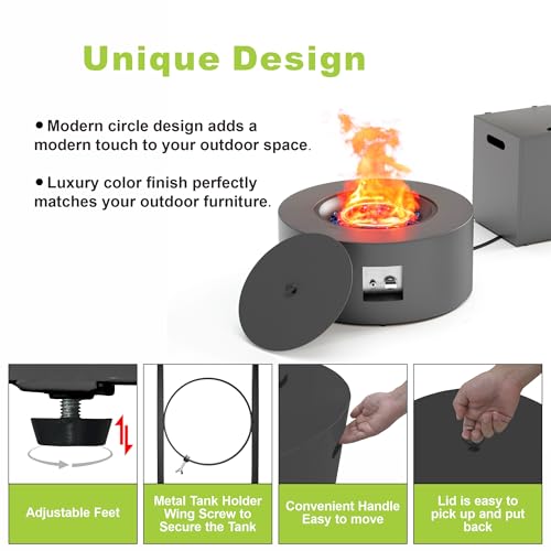 Complete Set with Premium Accessories - Comes with rain cover, fire glass, table lid, tank table, and regulator hose. Oxford fabric cover protects from sun, rain, and snow when not in use.