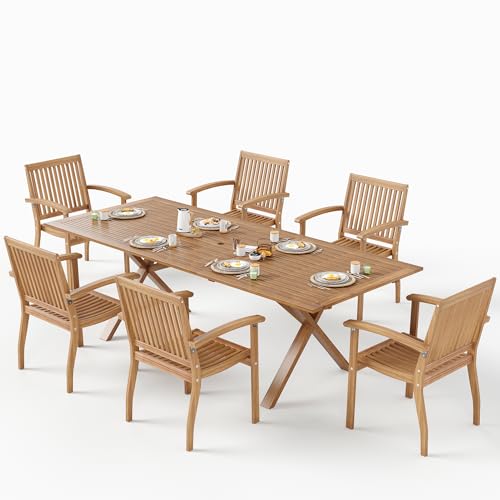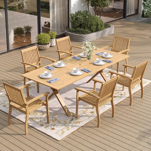 ?7 Piece Acacia Wood Outdoor Dining Set?Including 1 x Extendable Rectangular Patio Dining Table with 1.97" umberlla hole, 6 x Acacia wood patio dining chairs. Perfect to transform your backyard, poolside, garden and deck into an elegant and comfortable dining area