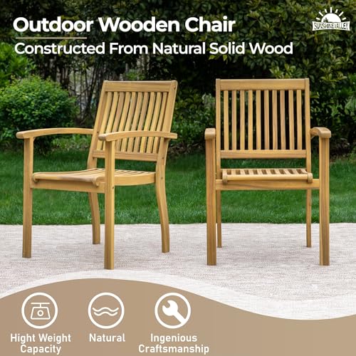 ?Sturdy Acacia Patio dining Chair?These patio chairs are also made of acacia wood, ensuring the chair is stable and strong. Max load capacity up to 350 lbs. The curvature of the back, armrests and seat of the chairs perfectly fit the curve of the human body, which will provide you the best and most comfortable seating experience