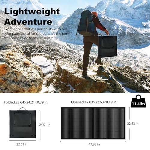 Lightweight and Portable: Crafted for mobility, this 100 watt portable solar panel is both lightweight and foldable. Its user-friendly design makes it perfect for on-the-go use, from camping trips to emergency preparedness.