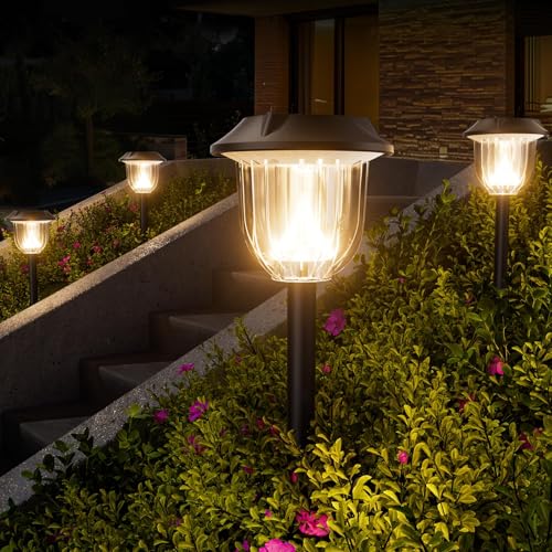 SOLAR LANDSCAPE LIGHTS: Our upgraded solar pathway lights draw inspiration from the cosmos, boasting a unique and durable construction. The sleek and modern design effortlessly complements the surrounding landscape, creating a lovely ambiance. Bringing a touch of magic to your garden and creates a warm and inviting atmosphere. Solar outdoor walkway lights are designed to provide an attractive pattern, lights up your garden at night.