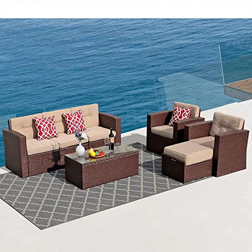 Sturdy & Durable Structure: Our patio furniture sets are made of sturdy and rust-free powder-coated iron frame and hand-woven wicker. The entire outdoor couch is durable and have high weight-bearing capacity. Can be used for a long time