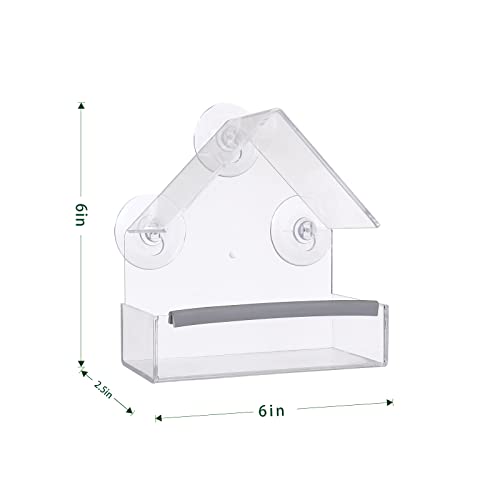 DURABLE AND LIGHTWEIGHT & EASY TO INSTALL:This durable and lightweight window bird feeder measure 6'' X 6'' X 2.5'', can stand for 2 , 3 birds at the same time. 3 extra strong suction cups can support 8 kilogram weight,ensure your window bird feeder remains secure even in extreme weather