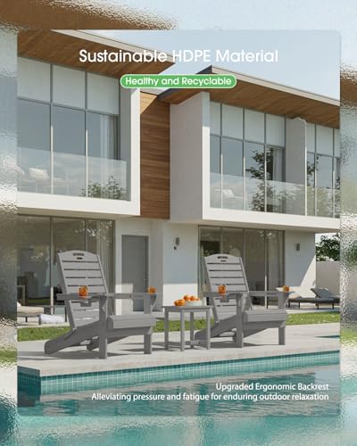 Weather-Resistant: Made of high-quality HDPE material with wooden texture, SUUNYN sturdy adirondack chair offers excellent weather resistance, resisting fading, splitting, cracking, chipping, peeling, and rotting in harsh conditions. Plus, its easy-to-clean surface and low maintenance