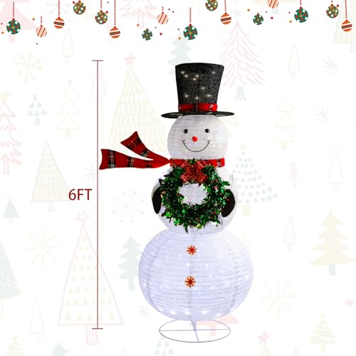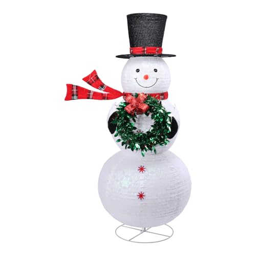 Christmas Ligthed Decoration - The Christmas snowman lit up by 200 warm LED lights is wearing a red scarf and holding a wreath;The snowman and Christmas Eve are the perfect combination, bringing Christmas joy and blessings