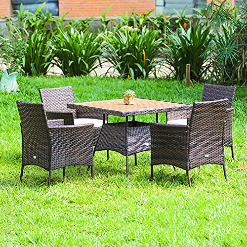 Durable Material & Sturdy Frame: Crafted from powder coated steel frame and solid acacia wood, this patio dining set ensures strong durability and will not deform easily. Besides, premium PE rattan can adapt to different weather conditions, which is durable enough for long-lasting outdoor use.